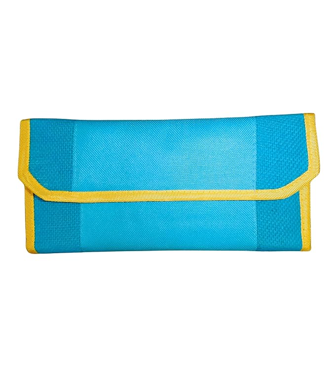 AVYRDO Slim Cheque Book Holder with 10 Compartments, Multiple Card Slots, Blending of Jute & Nylon (Blue and Yellow)