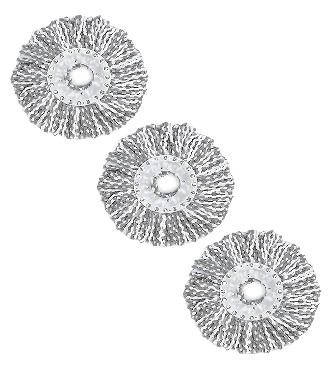 AVYRDO Heavy Duty Microfiber Spin Mop Head Replacement Refill, Mop Refill Only, Pack of 3, Dual Color Fibres (White and Grey)