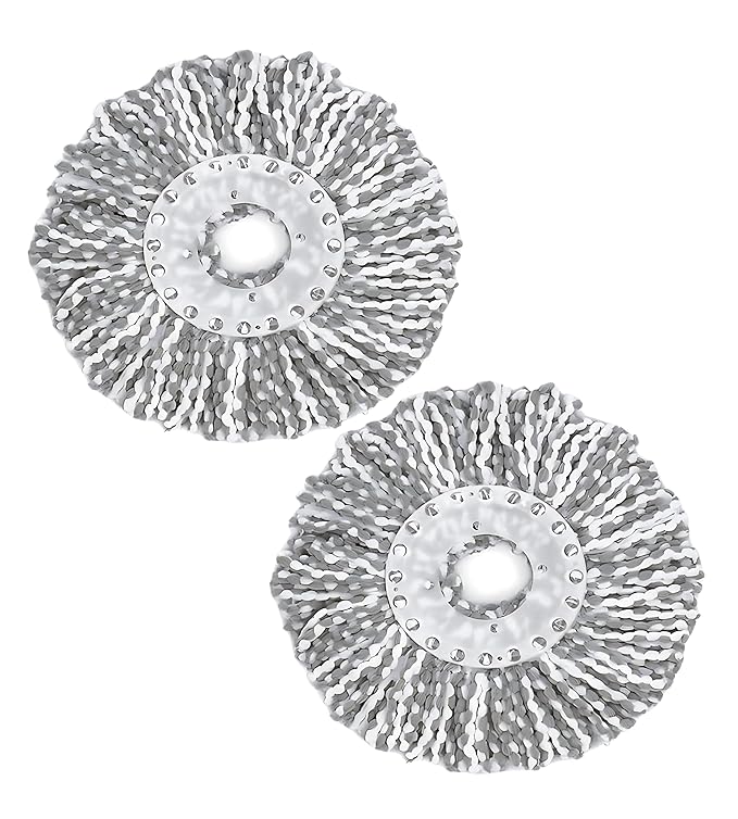 AVYRDO Heavy Duty Microfiber Spin Mop Head Replacement Refill, Mop Refill Only, Pack of 2, Dual Color Fibres (White and Grey)