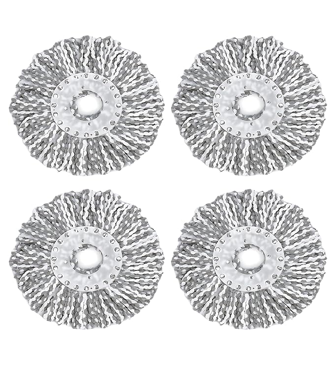 AVYRDO Heavy Duty Microfiber Spin Mop Head Replacement Refill, Mop Refill Only, Pack of 4, Dual Color Fibres (White and Grey)