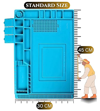 Professional Electronics Repair Mat, Anti Static ESD Safe Up To 500°C Heat-Resistant Silicone Mat Workbench, Size 45x30cm (Blue)