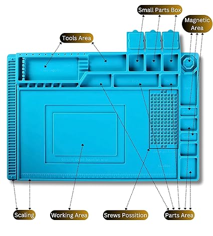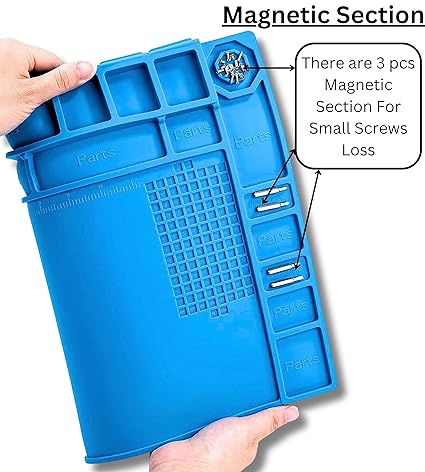 - WORKSPACE LAYOUT: Built-In Magnetic Sections for Securing Tools, Screws, and Small Metal Components During Repair Tasks.