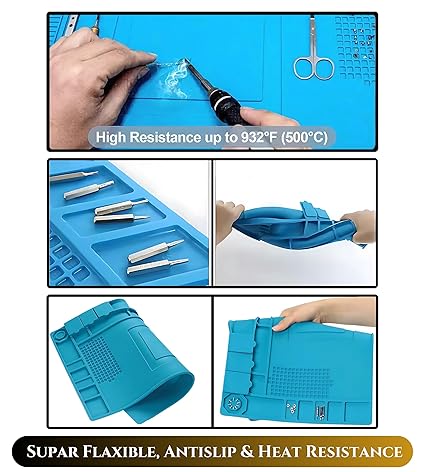 - ADDTINOL FEATURE: The Soldering Repair Mat is Made of Silicone Material, Making It Supar Flexible, Non-Toxic, Anti-Static, Anti-Slip, Retardant, Anti-Skid, Anti-Corrosion And Eco-Friendly. Being Flexible It Can Be Folded And Placed Anywhere.