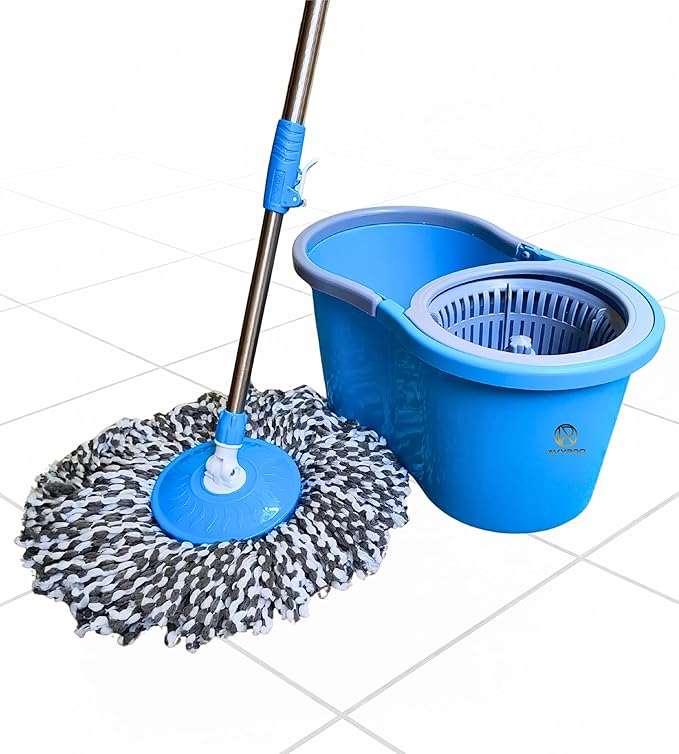AVYRDO Sturdy 360° Spin Mop and Bucket Set with Heavy-Duty Mop Stick & 2 Double Color Microfibre Refill Head for Floor Cleaning, Pocha (Sturdy Blue)